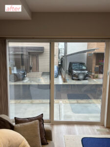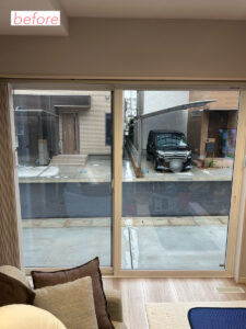 こちらは先月、新築戸建てのリビングの窓(掃き出し)にミラーフィルムを施工した時の様子です。
